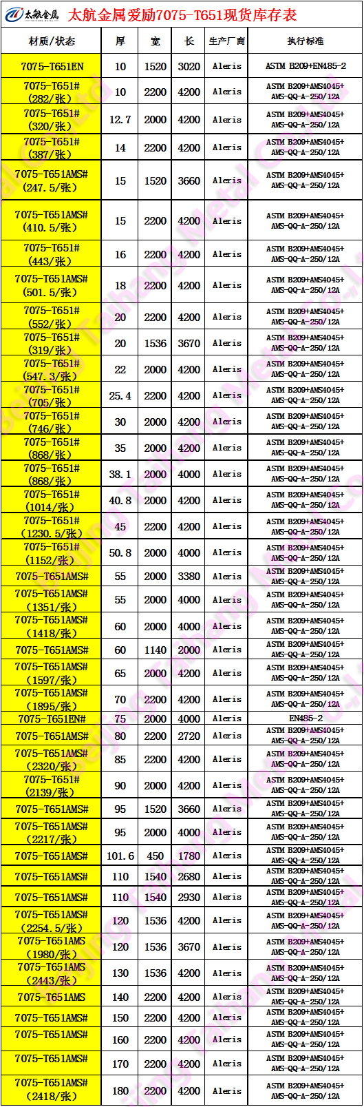二、太航金屬Aleris7075-T651鋁板產(chǎn)品特點(diǎn):